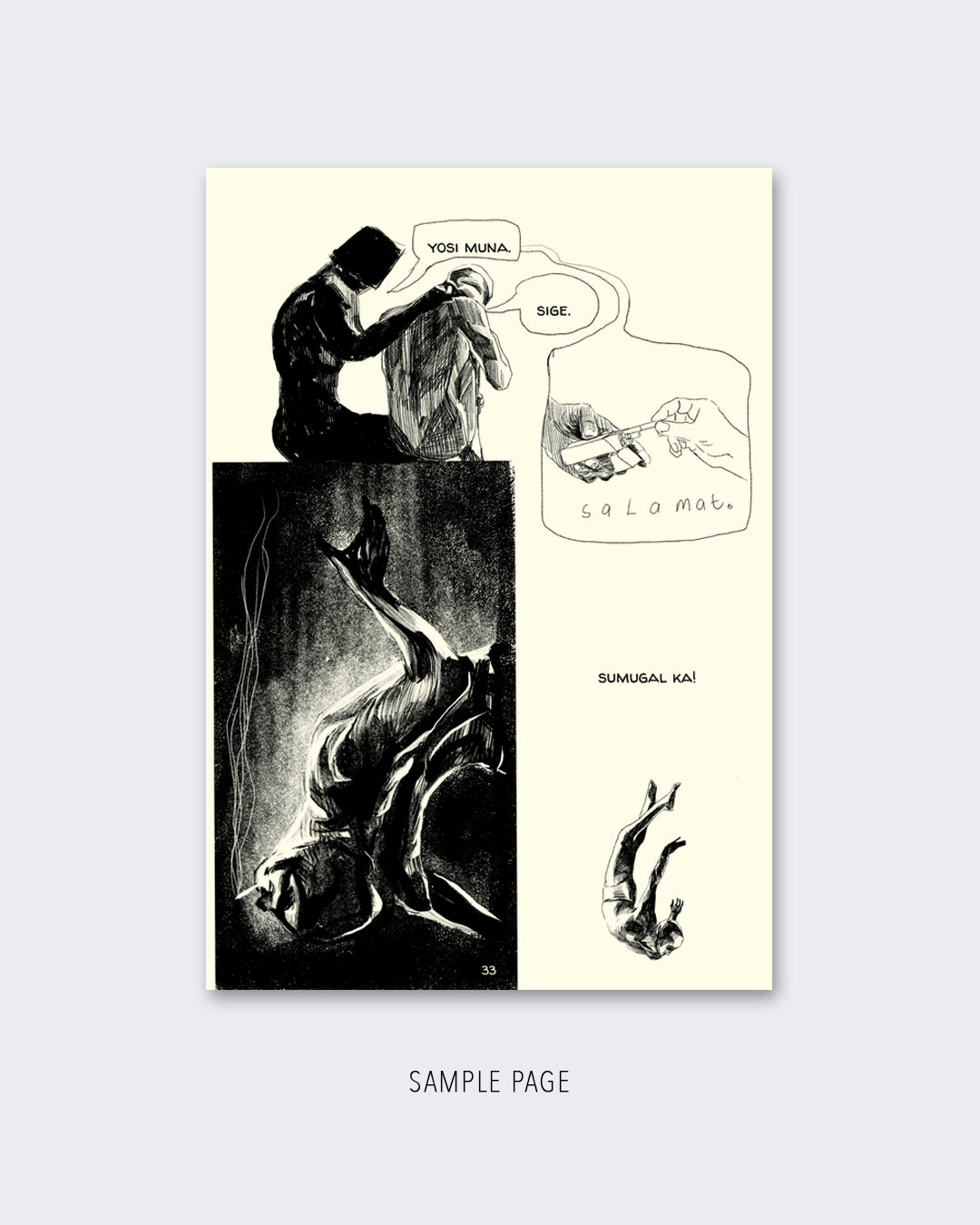 Another NOTBUK, this time by artist JC Mariategue who tells the liminal and nightmarish story of El Kaha's descent into what lies beyond. A shadowy figure is his companion, acting as his guide as well as reminding him to regularly take smoke breaks.